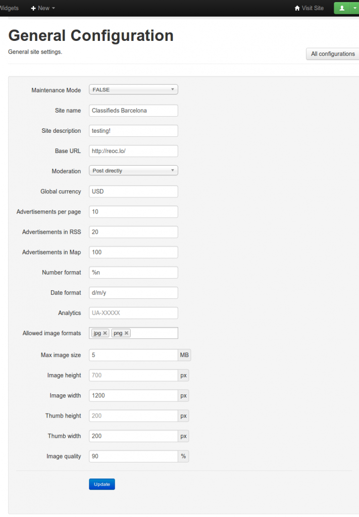 General Configuration ‹ Return to General Configuration 11/06/2013 Chema — No Comments Here you can change the settings of your site.